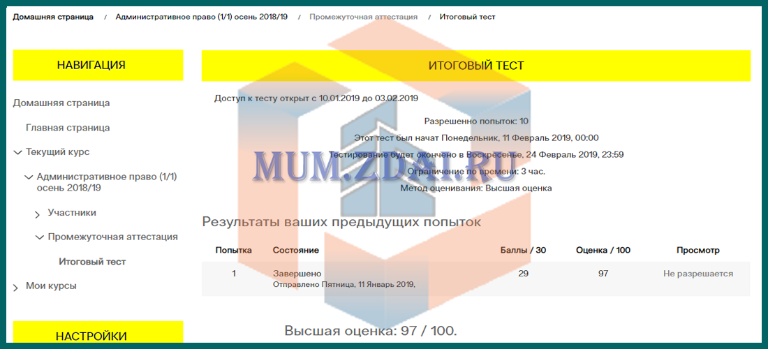 Для получения положительной оценки, необходимо выполнить все тесты и некоторым группам выполнить курсовую работу (смотрите в своей эл. зачетке).